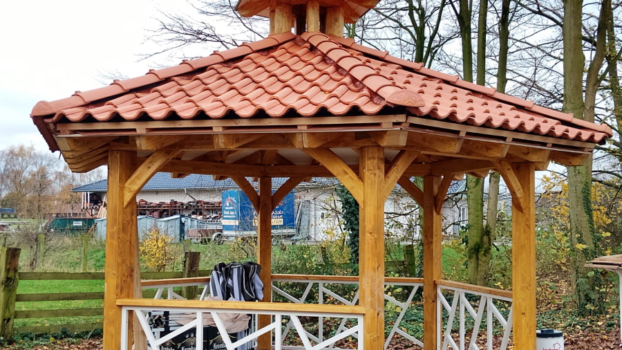 die Rasthütte ist fast fertigigestellt, die Bäume sind gepflanzt, das Begrüßungsschild ist aufgestellt