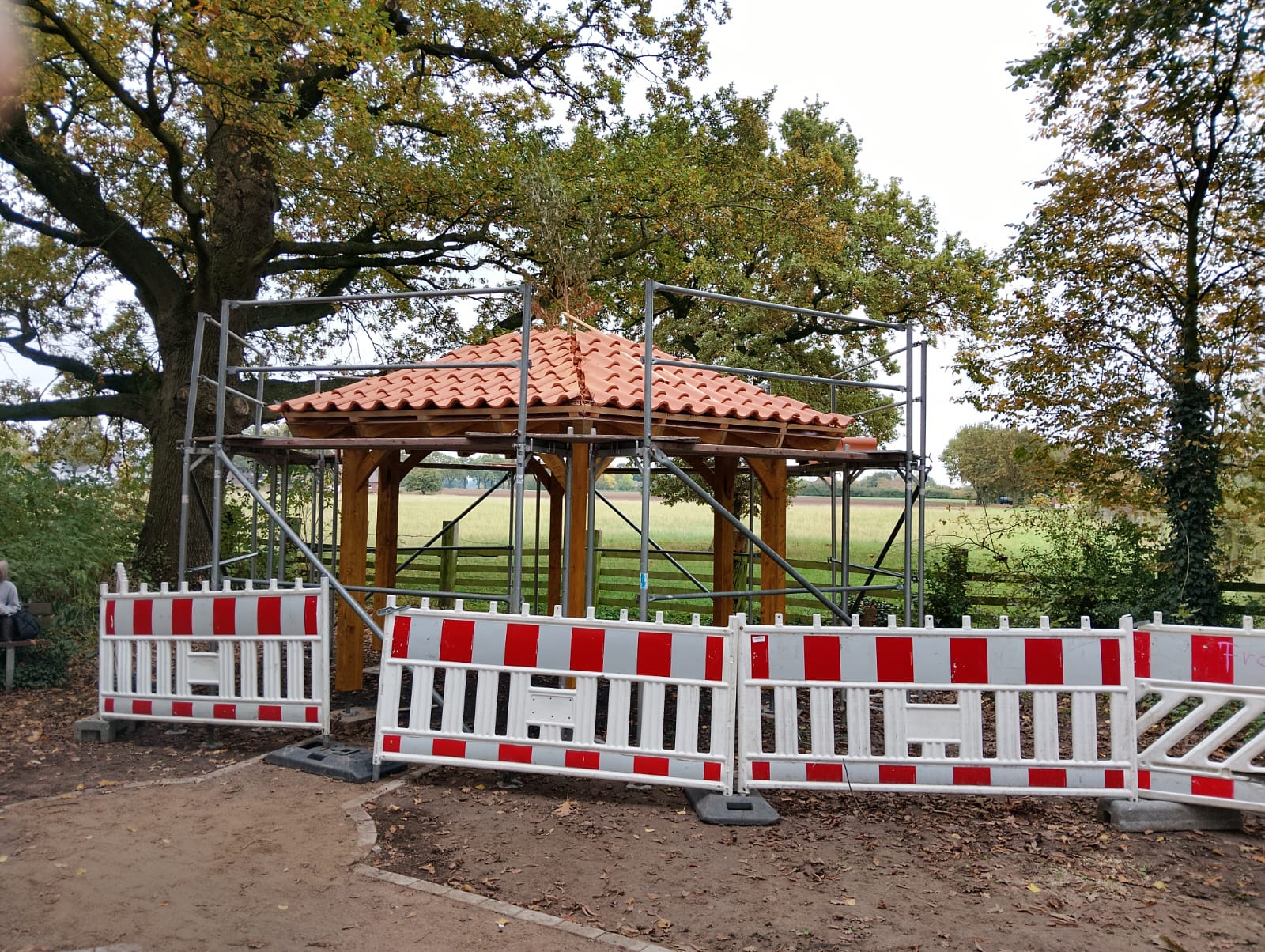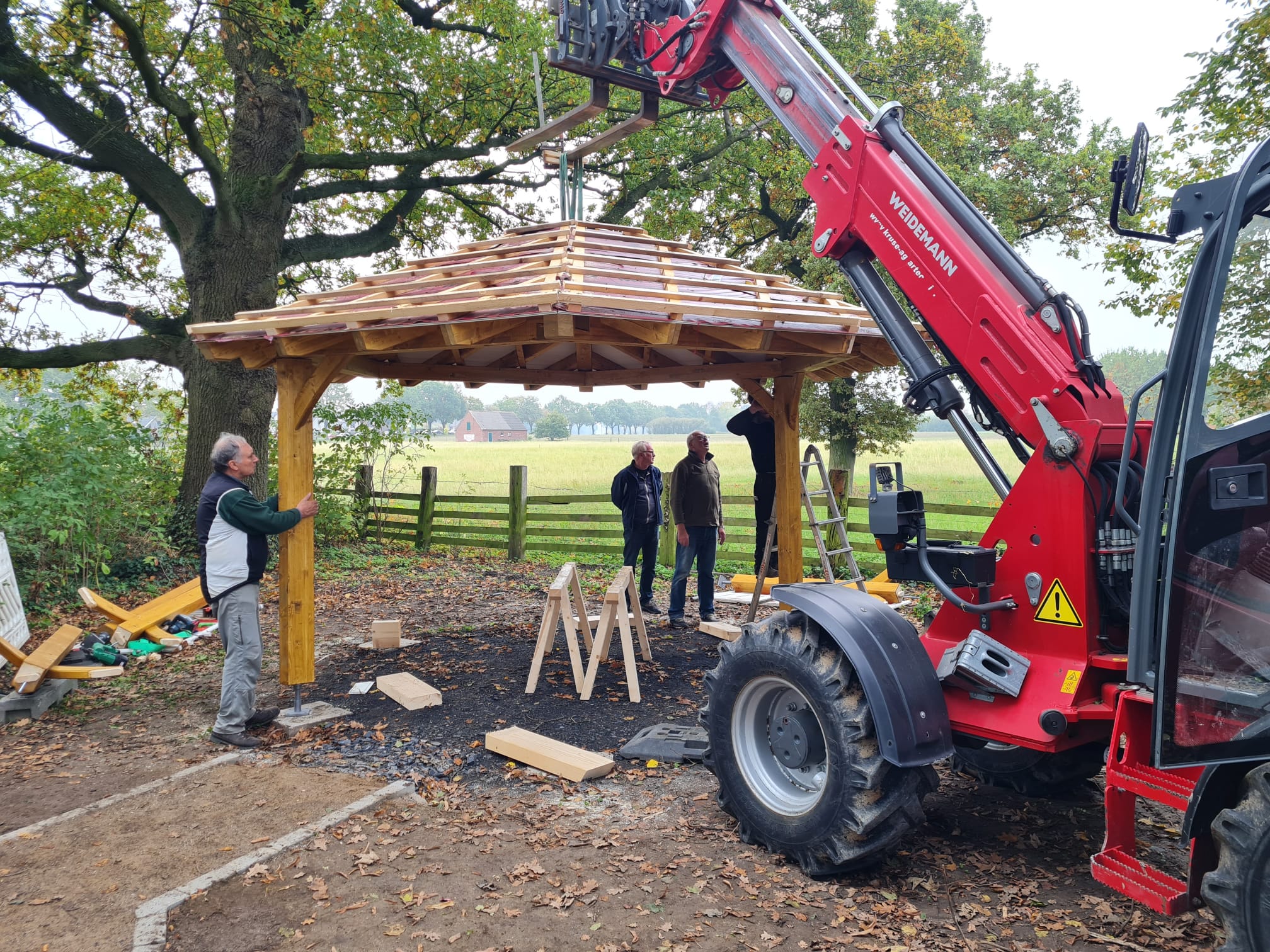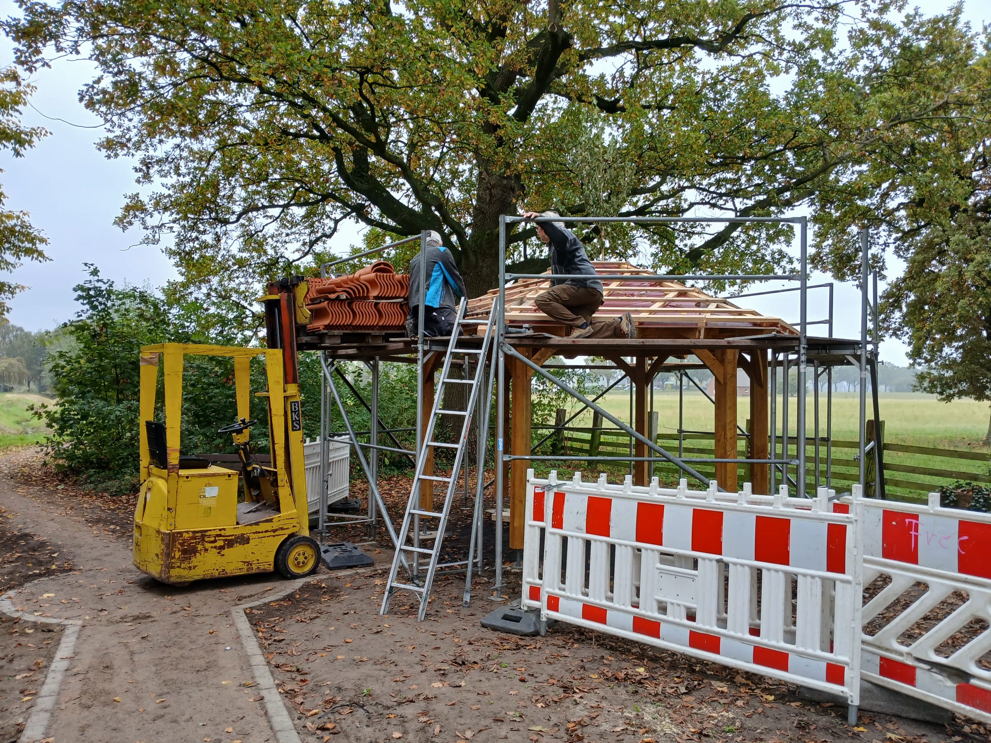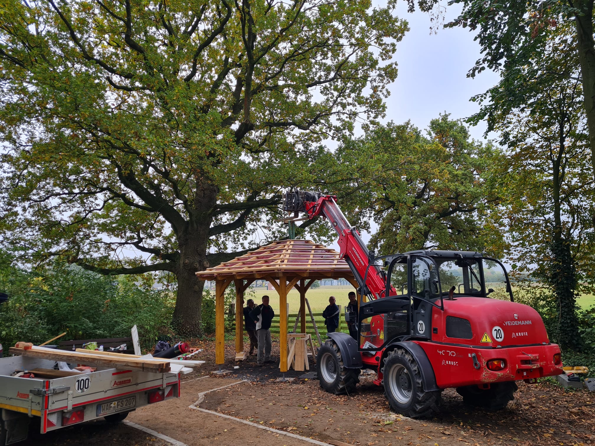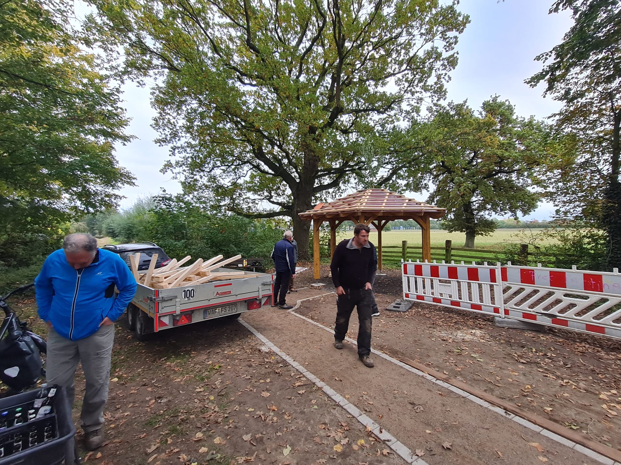 Projekt „Dicke Eiche“ – Die Rasthütte ist fast fertig, die Bäume sind gepflanzt und das Begrüßungsschild ist aufgestellt