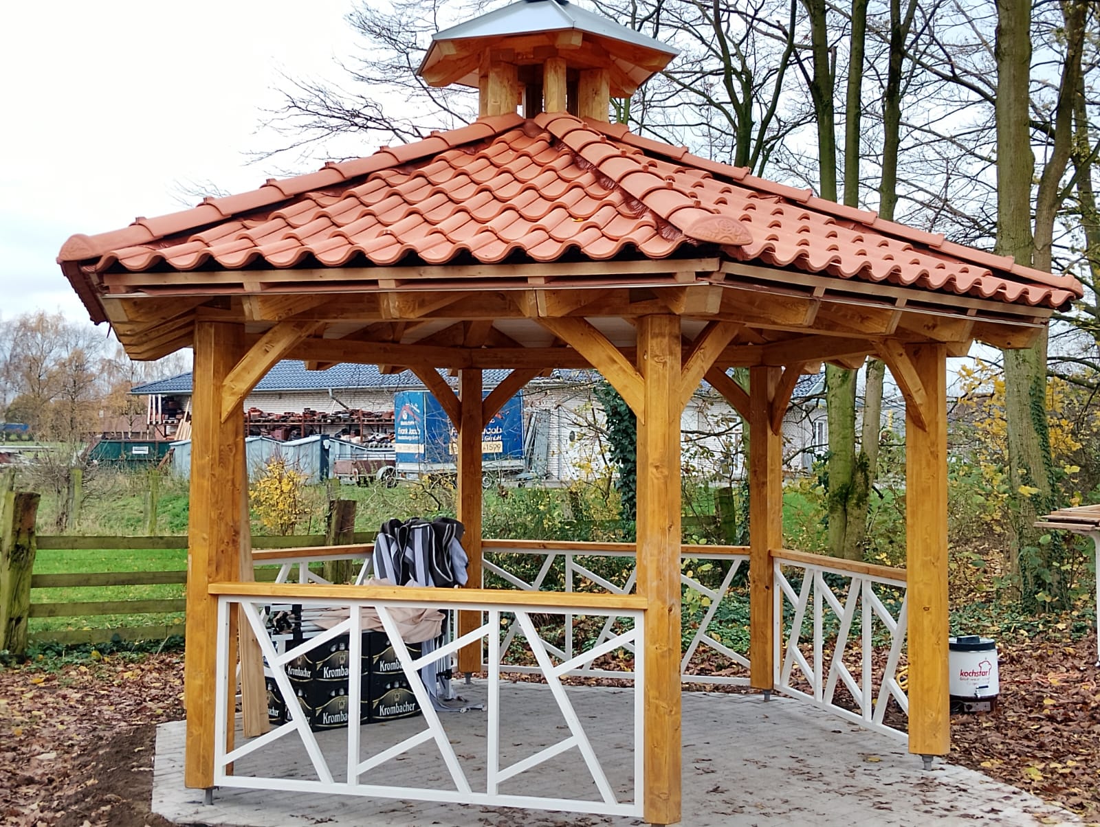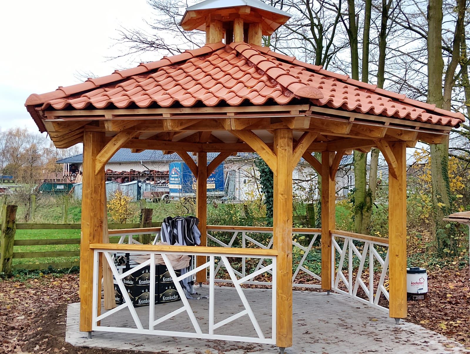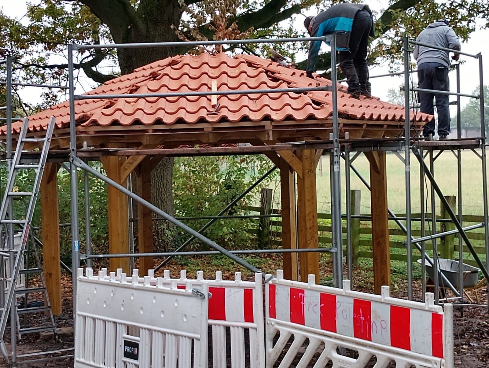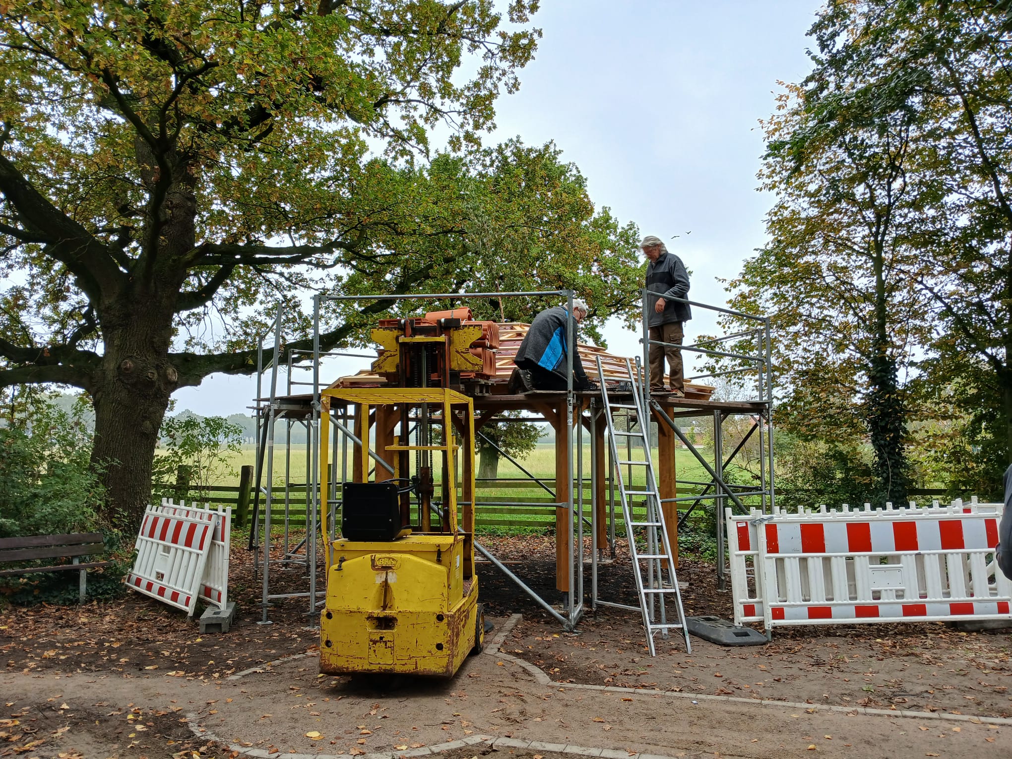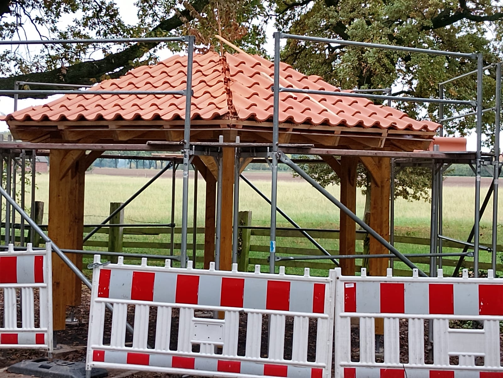 Projekt „Dicke Eiche“ – Die Rasthütte ist fast fertig, die Bäume sind gepflanzt und das Begrüßungsschild ist aufgestellt