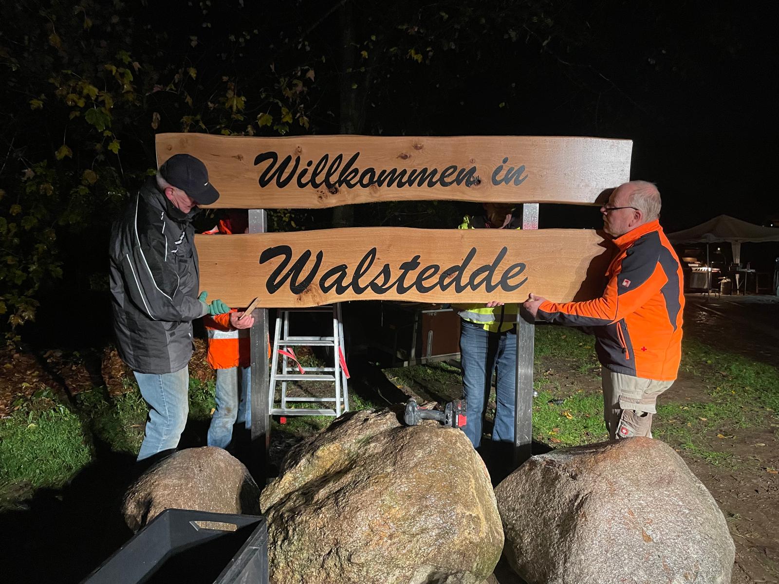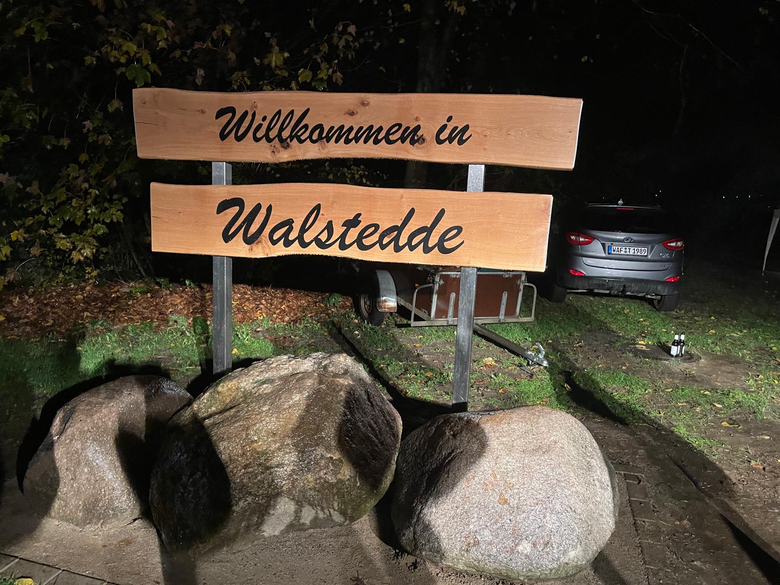 An der Rasthütte sind wir jetzt richtig weit gekommen: Die Arbeiten stehen kurz vor dem Abschluss, und das neue Begrüßungsschild „Willkommen in Walstedde“ heißt nun alle herzlich willkommen, die ins Dorf kommen. Entlang des neu angelegten Naturpfads – ebenfalls Teil des Projekts – stehen außerdem die frisch gepflanzten Bäume, die dem gesamten Areal schon jetzt ein besonders schönes und einladendes Bild geben.