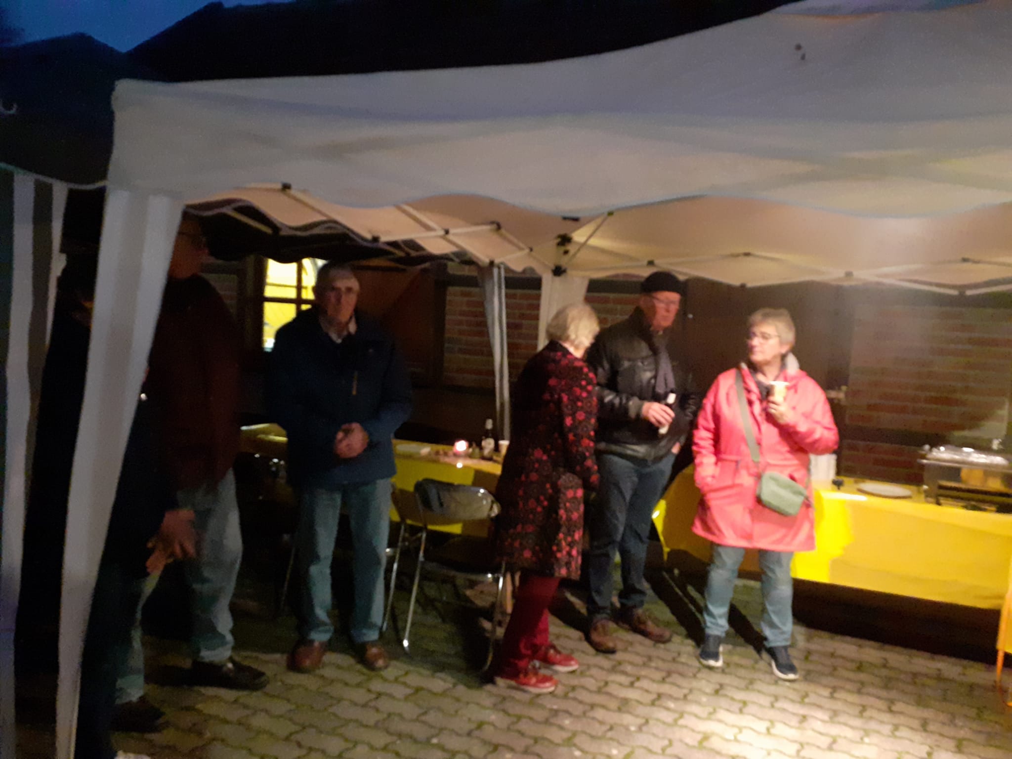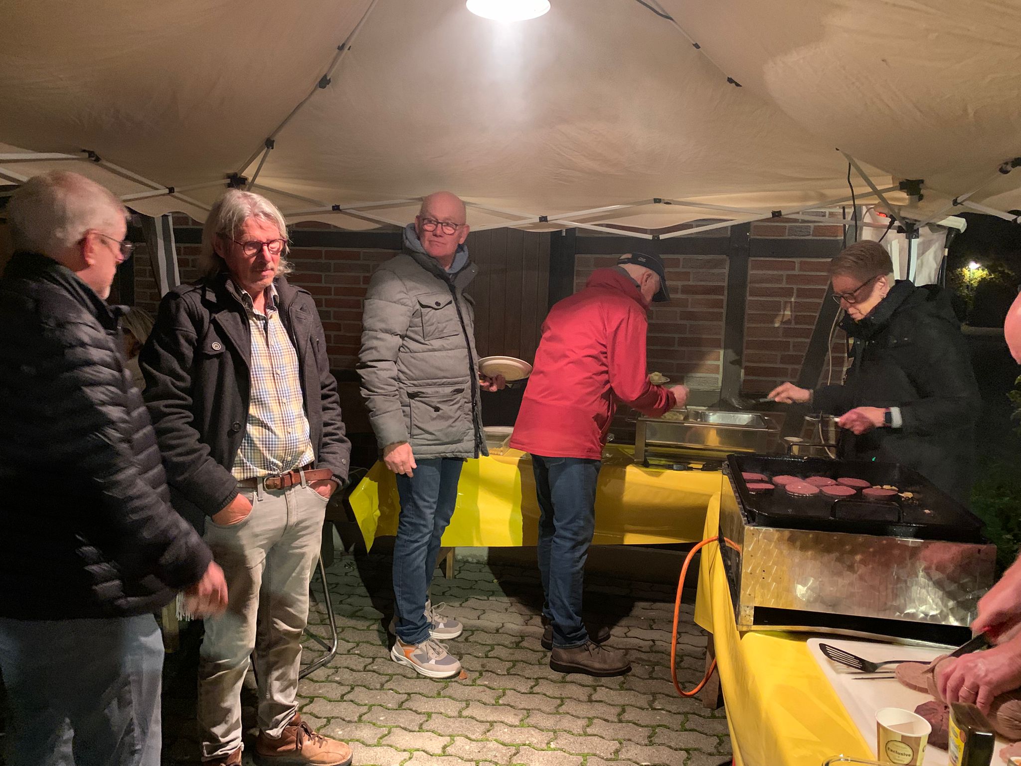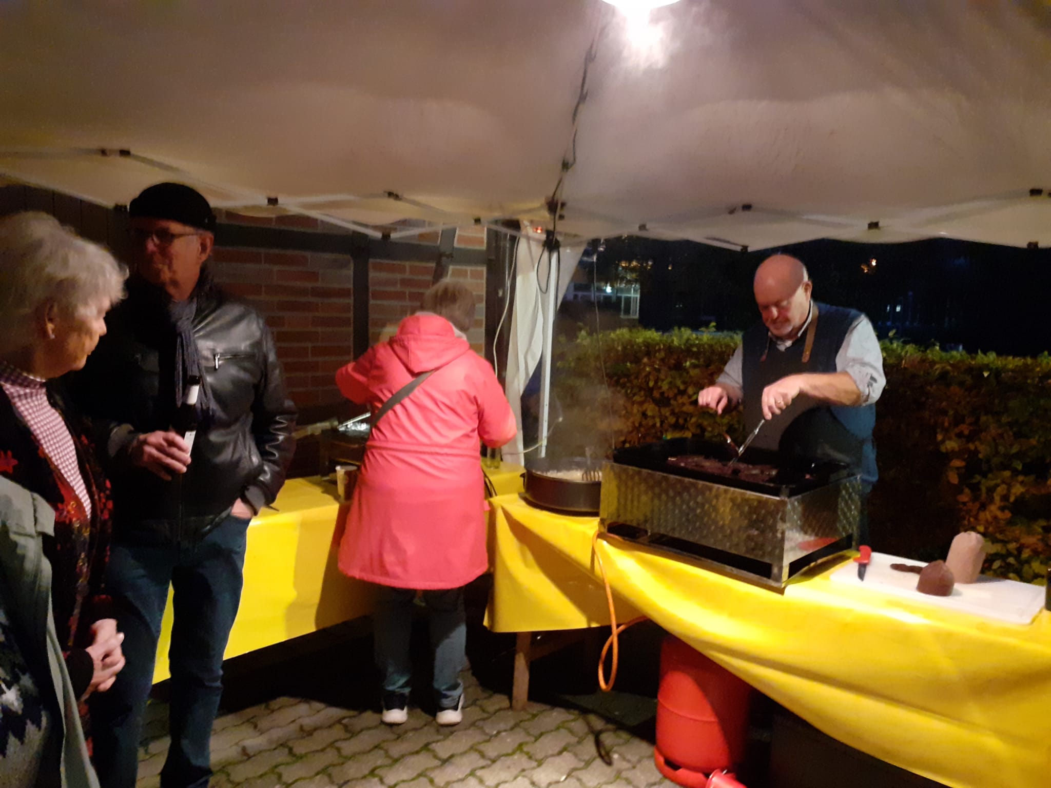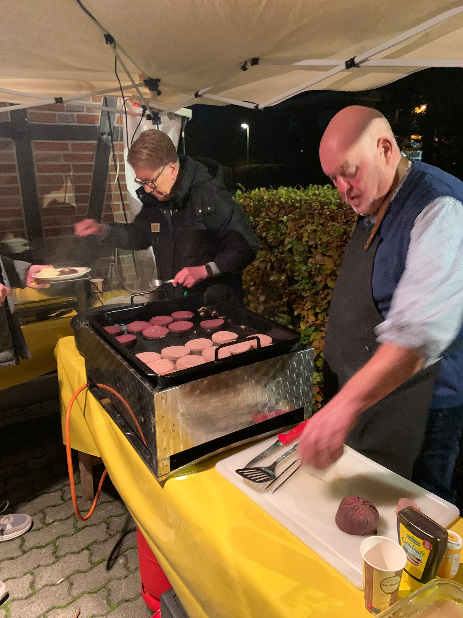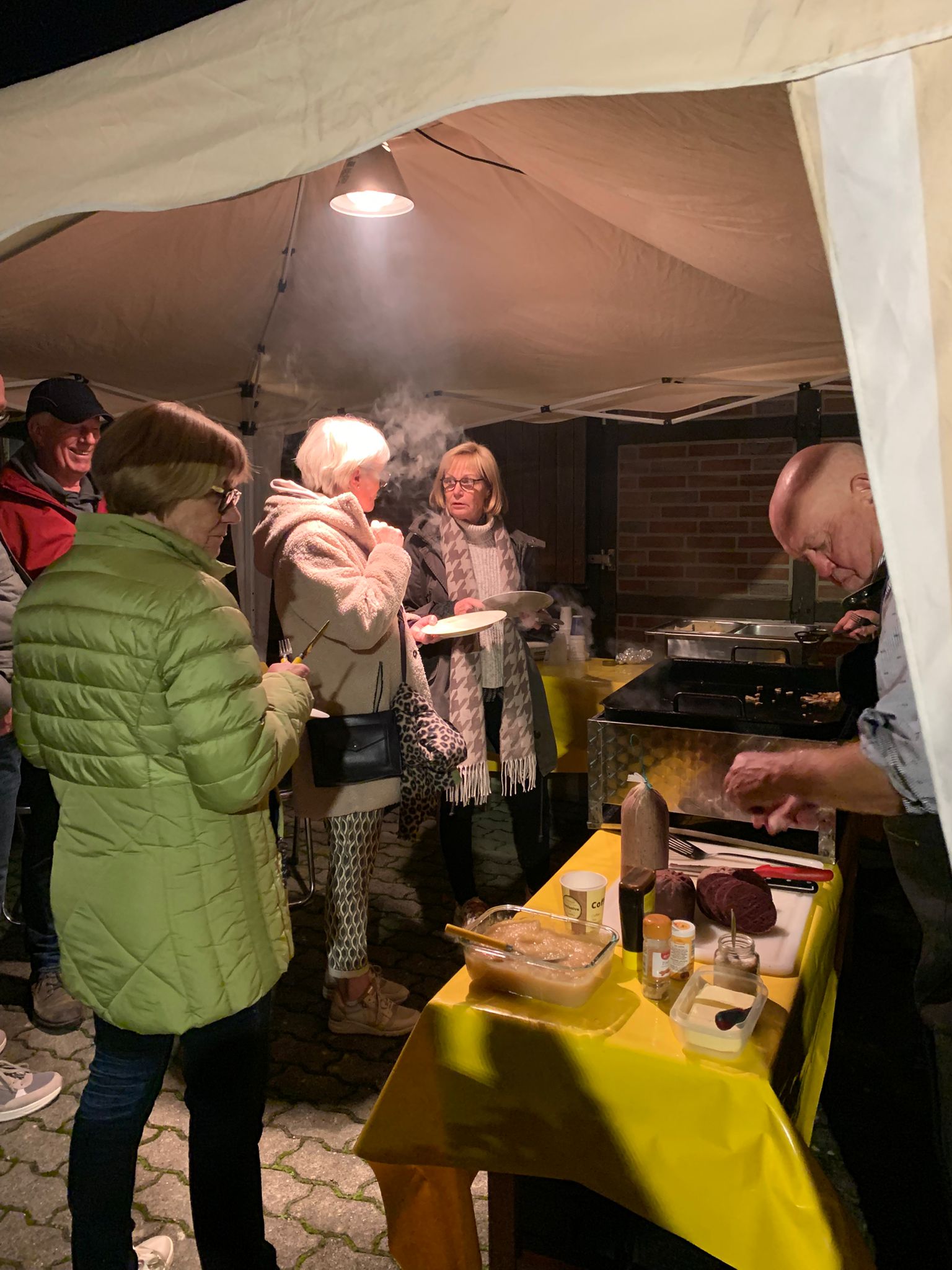 Kulinarisch kam natürlich das Möpkenbrot nicht zu kurz: Es wurde in diesem Jahr von Heinz und Ulrike Ohlmeier professionell und mit viel Herz frisch gebraten und mit Kartoffelpüree, geschmorten Zwiebeln und Apfelmus serviert. Dazu gab es eine Auswahl an Getränken – von Kaltgetränken bis hin zu wärmendem Glühwein.