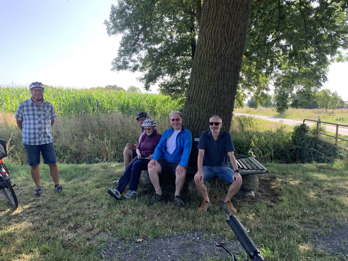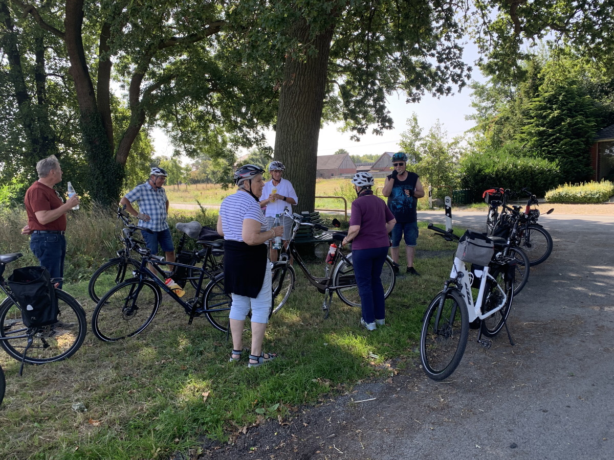 Am Sonntag, den 10.08.2025, machten sich 14 gut gelaunte Teilnehmer auf den Weg zu einer gemütlichen Radtour nach Davensberg. Die Strecke führte uns auf rund 50 Kilometern durch die malerische Parklandschaft des Münsterlandes – vorbei an alten Baumalleen, traumhaft schönen Bauernhöfen und durch schattige Waldwege.